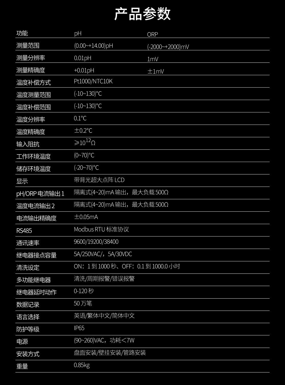 | 應(yīng)用行業(yè) | SIN-pH/ORP8.5在線ph測(cè)量?jī)x廣泛應(yīng)用于廢水,純凈水,高 純水,環(huán)境監(jiān)測(cè),食品生產(chǎn)過程等。 |