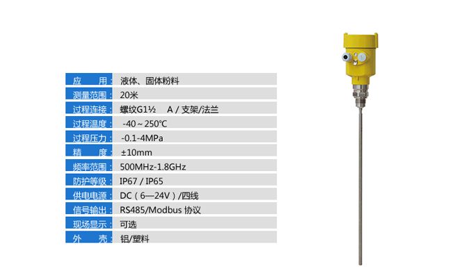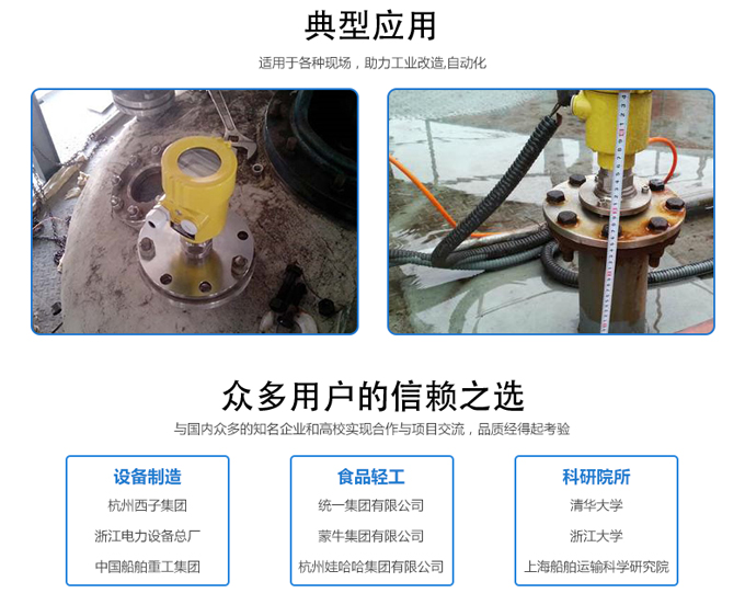 | 應(yīng)用行業(yè) | SIN-RD701導(dǎo)波雷達液位計應(yīng)用于水液儲罐、酸堿儲罐、漿料儲罐、固體顆粒、小型儲油罐、各類導(dǎo)電、非導(dǎo)電介質(zhì)、腐蝕性介質(zhì)。如煤倉、灰倉、油罐、酸罐等。 |