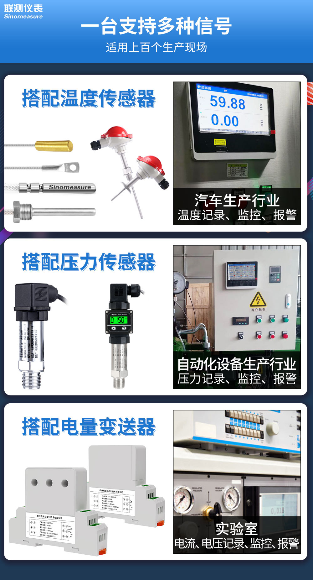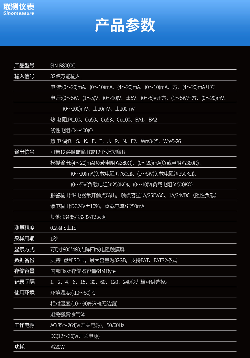 聯(lián)測(cè)儀表SIN-R8000C可帶12路報(bào)警輸出或12個(gè)變送輸出,RS232/485通訊接口,以太網(wǎng)接口,微型打印機(jī)接口和USB接口,SD卡插座;可提供傳感器配電;采用拔插式間距為5.08的接線端子,方便電氣連接;具有強(qiáng)大的顯示功能,實(shí)時(shí)曲線顯示,歷史曲線追憶,棒圖顯示等。人性化的外觀設(shè)計(jì)、完美的功能體現(xiàn)、可靠的硬件品質(zhì)、精湛的制造工藝,使本產(chǎn)品具有更高的性能價(jià)格比。