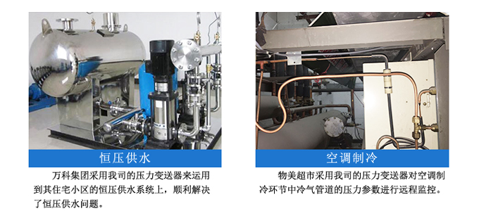 應(yīng)用行業(yè) SIN-3051DP雙法蘭差壓液位變送器廣泛應(yīng)用于恒壓供水、空調(diào)制冷、壓縮空氣、油壓測試等。