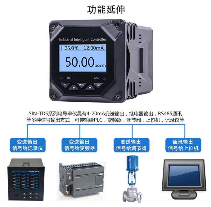 SIN-TDS210工業(yè)電導率儀表,可對各種工業(yè)用水的電導率(TDS)值進行連續(xù)測量和控制,本裝置廣泛應用于科學實驗裝備、化工、制藥、環(huán)保、冶金、造紙、食品、飲料及供水等行業(yè)。根據(jù)水工業(yè)的環(huán)境和特點結(jié)合國際供電標準,考慮了特殊環(huán)境的電氣設(shè)計規(guī)范,增加了220VAC供電。