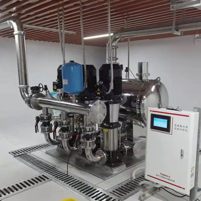 此次提升改造項目采用新型無負壓供水系統(tǒng)代替原有以水箱水池蓄水為基礎(chǔ)的二次供水系統(tǒng),對市政管網(wǎng)居民用水的水質(zhì)監(jiān)測提出了更高要求。