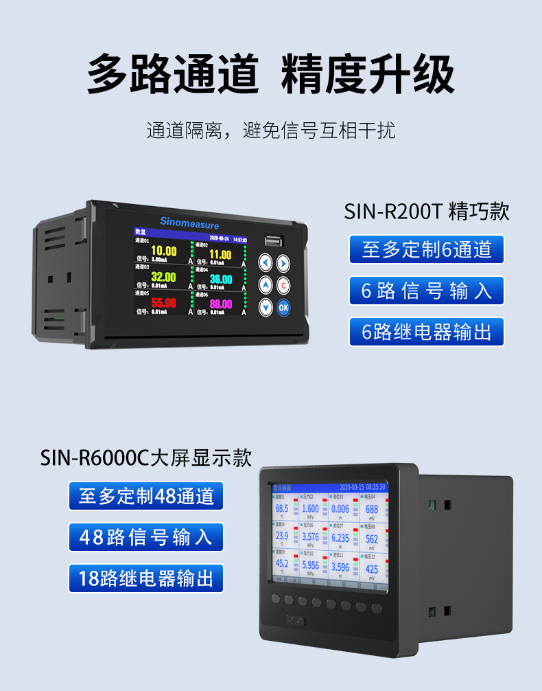 聯(lián)測儀表SIN-R6000C/4000C彩色/藍屏7英寸無紙記錄儀1~48路可選
